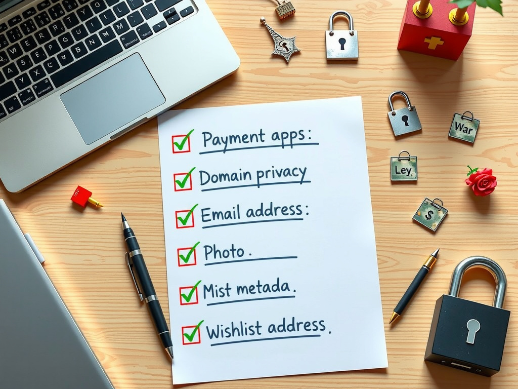 Photo metadata: Strip EXIF data from every single image before uploading. Tools like ImageOptim or ExifTool make this easy.